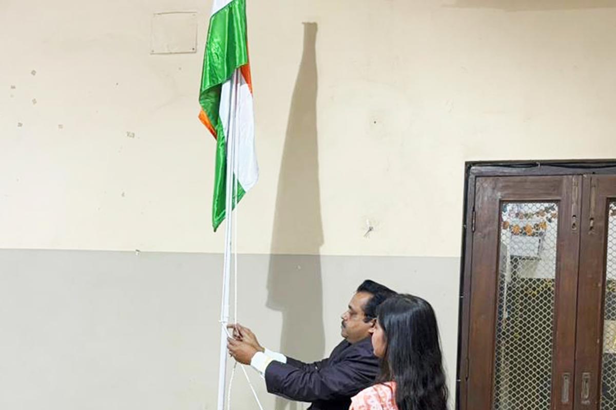 The celebration commenced at 10:00 a.m. with the hoisting of the National Flag by Ms. Debika Samanta, a 3rd Year BPT student, followed by the National Anthem, filling the atmosphere with pride and patriotism. Dr. Subir Ghosh, Principal of NIMS, addressed the gathering and highlighted the richness and significance of the Indian Constitution.