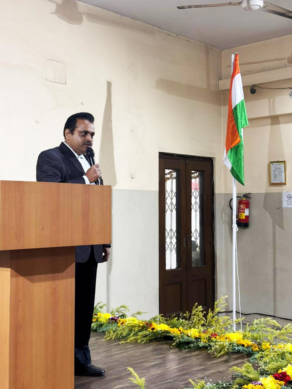 The celebration commenced at 10:00 a.m. with the hoisting of the National Flag by Ms. Debika Samanta, a 3rd Year BPT student, followed by the National Anthem, filling the atmosphere with pride and patriotism. Dr. Subir Ghosh, Principal of NIMS, addressed the gathering and highlighted the richness and significance of the Indian Constitution.